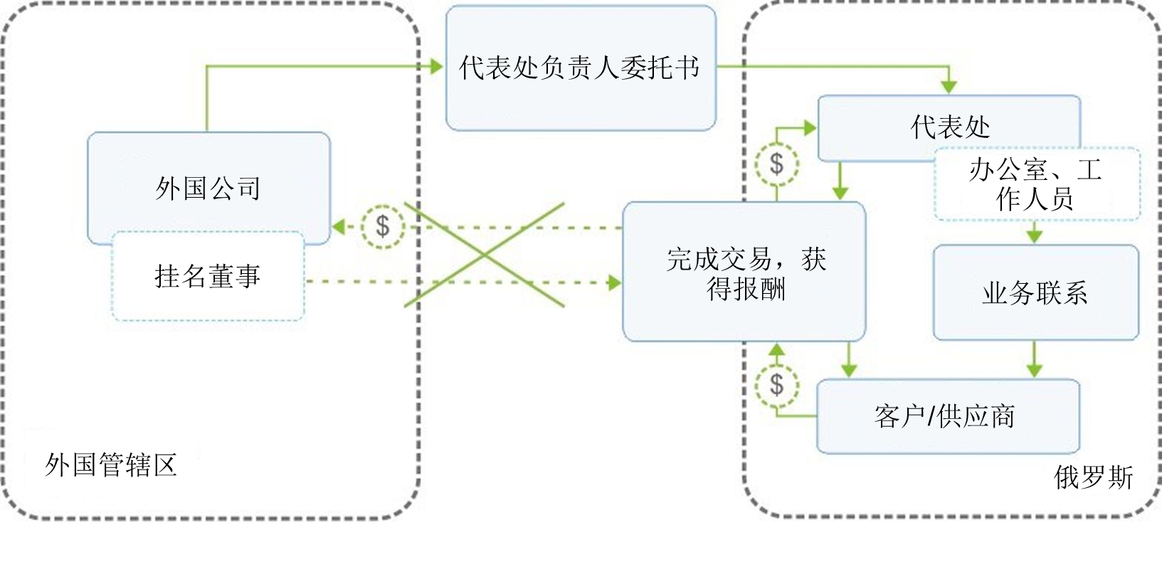 通过外国公司代表处在俄罗斯联邦开展工作的风险流程图的示例
